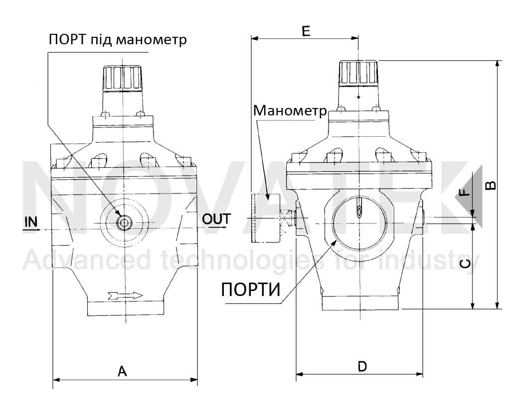 Модель Порти IN-OUT* A B C D E F Порт під манометр