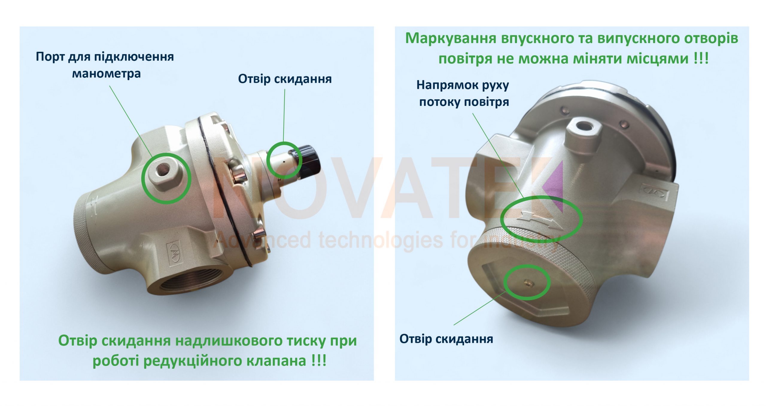• Конструкція редукторів з внутрішнім пілотним регулятором та регулятором скидного тиску.