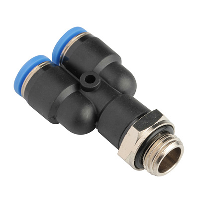 Фитинг быстроразьемный цангового типа, пластиковый, тройник (разветвитель) Y - тип с внешней (наружной) резьбой G для пневматической трубки.
