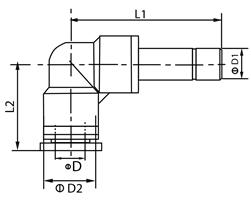 - З'єднувач кутовий (під 90º) для встановлення в цангу з прямим переходом під трубку 4; 6; 8; 10; 12мм.