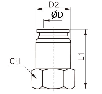 - Фітинг прямий, швидкорозємний, цангового типу з внутрішньою різьбою з нержавіючої сталі SUS316 під трубку 4, 6, 8, 10, 12, 14, 16мм.